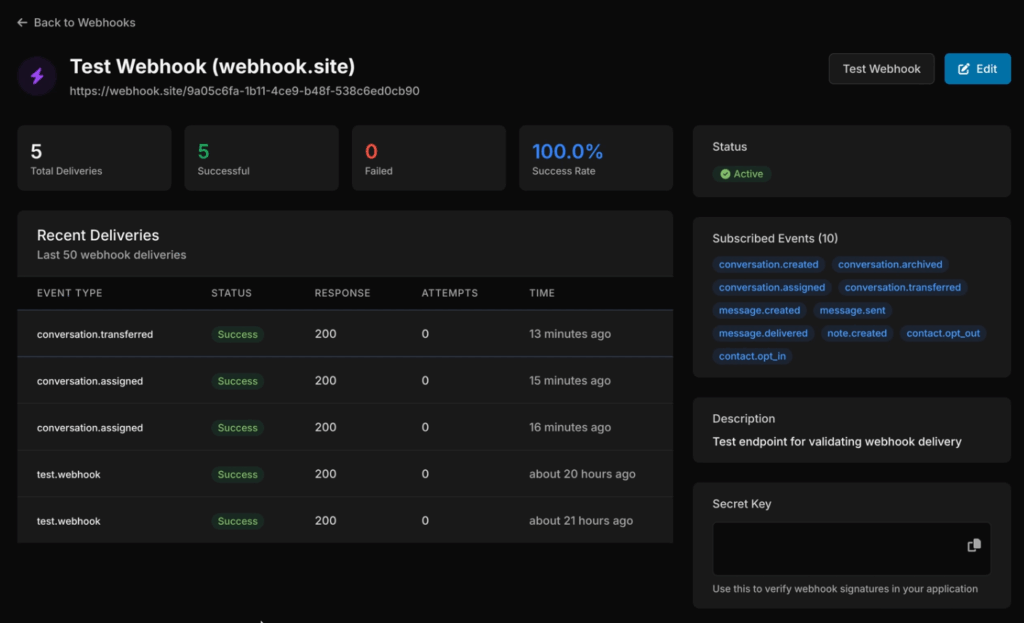 Take advantage of webhook triggers like “conversation started” and “note created” to trigger custom integrations and workflows.