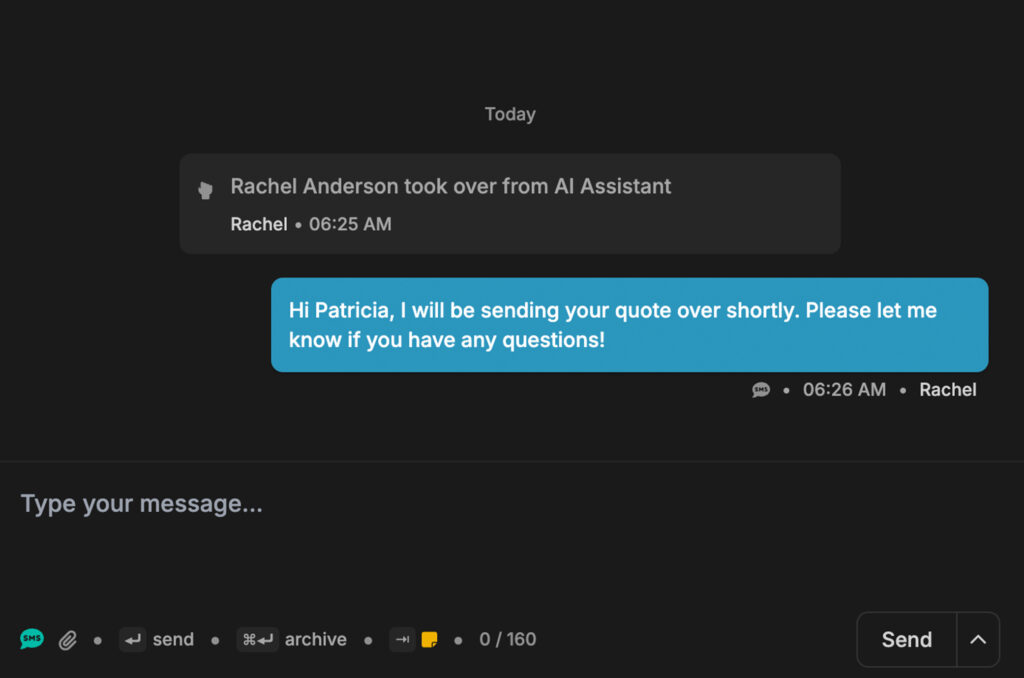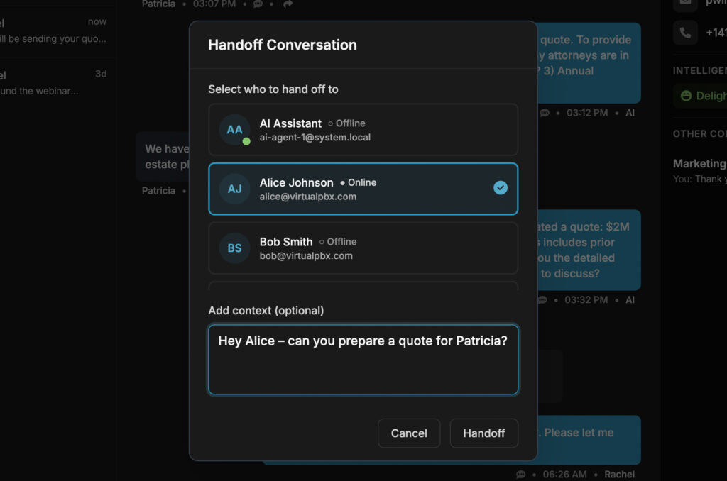 Not the right person for the conversation? No problem. Handoff conversations to other team members with added context.